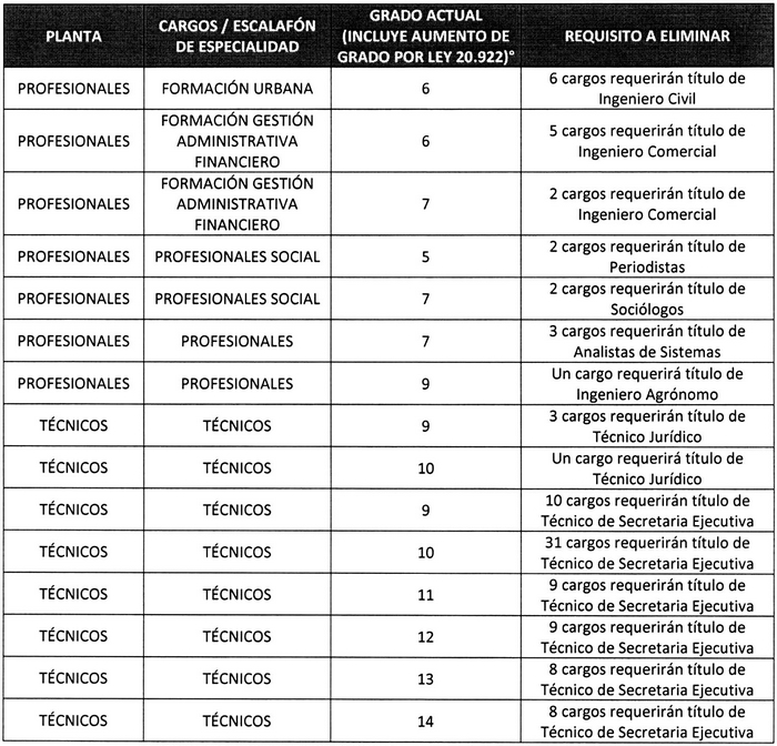 Artículo 7º: Elimínanse los requisitos de los cargos de la planta de personal de la Municipalidad de Santiago que se señalan a continuación: