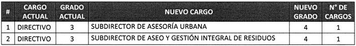 Artículo 6º: Modifícanse las nominaciones y los grados de los siguientes cargos en las plantas directivos que se indican a continuación: