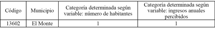 12. La resolución exenta Nº 1.049 de fecha 28 de mayo de 2019, de la Subsecretaría de Desarrollo Regional y Administrativo, que deja constancia de las categorías en que se ubican las municipalidades del país y del rango de grados de remuneraciones que corresponde asignar a los respectivos alcaldes en la correspondiente planta de personal, en cumplimiento de lo dispuesto en el artículo 5° del decreto Nº 1.675, de 2016, del Ministerio del Interior y Seguridad Pública, que incluye al Municipio de El Monte según lo siguiente: