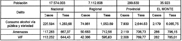 13. Que, se debe tener en cuenta que en la creación de los nuevos cargos directivos nominados Director de Asesoría Jurídica, Director de Medio Ambiente, Aseo y Ornato y Director de Desarrollo Económico Local y Fomento Productivo, se consideró un grado 7°, similar a otros directivos de la planta municipal como lo es el Secretario Municipal, el Director de la Secretaría de Planificación Comunal, el Director de Desarrollo Comunitario, el Director de Obras Municipales y el Director de Control, y que, al cargo nominado Director de Seguridad Pública, creado por decreto alcaldicio Nº 1.940 de fecha 28 de diciembre de 2018, se le asignó un grado 8º, y que por aplicación del principio de igualdad de responsabilidades, se modificará su grado, asignándole un grado 7°, de manera de equiparar su nivel remuneratorio al de otras plazas directivas jerárquicamente equivalentes. Por otra parte, la entrada en vigencia de la Ley Nº 20.965 que permitió la creación de Consejos y Planes de Seguridad Pública, que, en lo pertinente, modificó la Ley Nº 18.695, Orgánica Constitucional de Municipalidades, estableciendo la obligación de la Municipalidad en "el desarrollo, implementación, evaluación, promoción, capacitación y apoyo de acciones de prevención social y situacional, la celebración de convenios con otras entidades públicas para la aplicación de planes de reinserción social y de asistencia a víctimas, así como también la adopción de medidas en el ámbito de la seguridad pública a nivel comunal, sin perjuicio de las funciones del Ministerio del Interior y Seguridad Pública y de las Fuerzas de Orden y Seguridad" y consideró, además, las estadísticas comunales respecto a los delitos de mayor connotación social, que al año 2016 señaló una tasa de 1.594,7 casos por cada cien mil habitantes, destacando la ocurrencia de 6,2 homicidios y 343 robos en lugar habitado para la misma tasa, proporcionan datos que entregan la justificación de hecho para que el profesional que ejerza este cargo, tenga un grado remunetario acorte a la función que se le encomienda, principalmente considerando que la problemática de la delincuencia y su consecuencia subjetiva en la percepción de mayor inseguridad en el país, se ha consolidado como el problema prioritario al que la ciudadanía demanda urgente preocupación por parte de las autoridades. De hecho, desde el período que comprende los meses de marzo-abril de 2000 al período abril-mayo de 2017, el porcentaje de la población que señala a la delincuencia como el problema prioritario creció del 37% al 55%, siendo agosto de 2015 el porcentaje más alto alcanzado (60%), según la Encuesta CEP, abril-mayo 2017. Otro dato relevante que permite priorizar la problemática de seguridad pública en la comuna y que permite argumentar la necesidad de aumentar el grado del cargo en cuestión, dice relación con las altas tasas de incivilidades, amenazas y violencia intrafamiliar de El Monte, que durante los últimos años presentan una tasa comunal superior a las tasas regionales y nacional, como se aprecia en el siguiente cuadro: