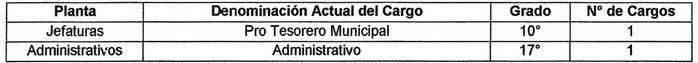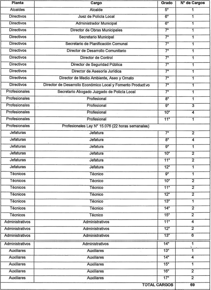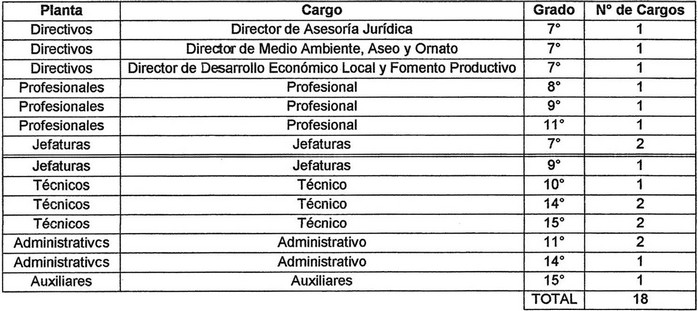 Artículo segundo: Créanse los cargos que a continuación se señalan, de conformidad a lo establecido en el artículo 49º bis de la Ley Nº 18.695, Orgánica Constitucional de Municipalidades: