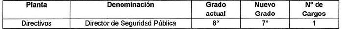 . Artículo tercero: Modifíquese el grado del siguiente cargo: