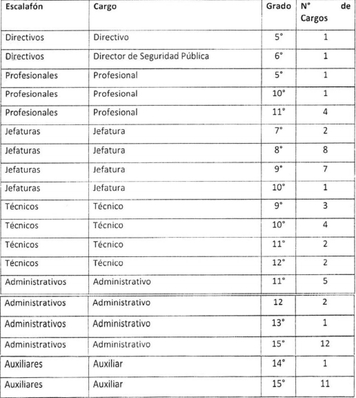 Asimismo, con el objeto de ordenar el municipio, que tenía un exceso de cargos en el escalafón de Técnicos, Administrativos y Auxiliares, se suprimen los siguientes cargos actualmente vacantes: