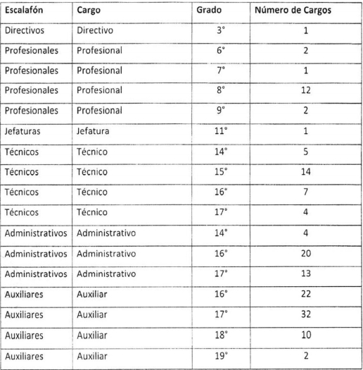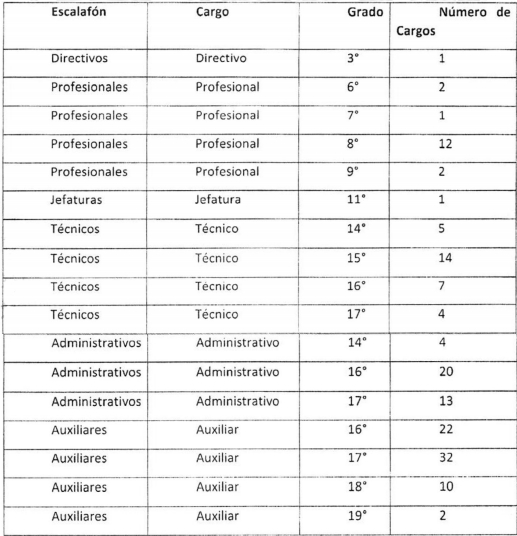 De igual forma con el objeto de contar con una estructura de personal que permita subsanar las deficiencias de la planta de personal vigente, se crea un cargo directivo genérico grado 5°, dos Jefaturas grado 7°, ocho Jefaturas grado 8°, siete Jefaturas grado 9° y una Jefatura grado 10°, todas con requisitos de título profesional.