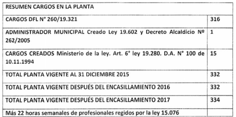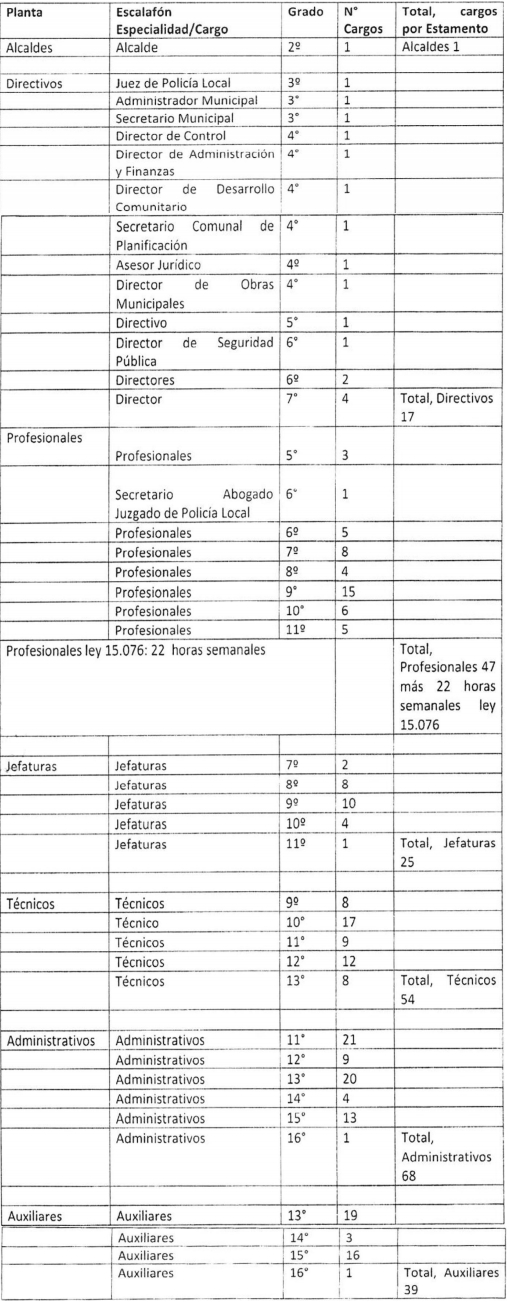 La planta propuesta contempla un total de 251 cargos más 22 horas semanales de profesionales regidos por la ley 15.076.
