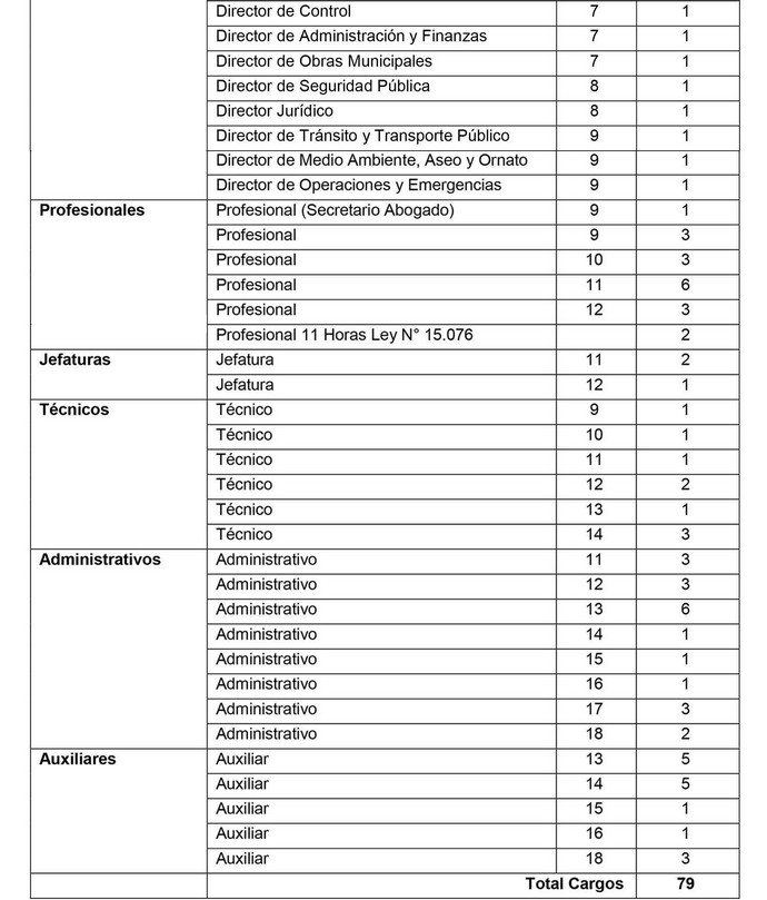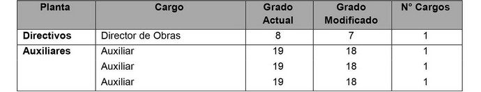 Artículo 3º: Modifícase los grados, de los cargos, de la planta, de conformidad a lo previsto en el artículo 48, de la ley Nº 18.695, como se indica: