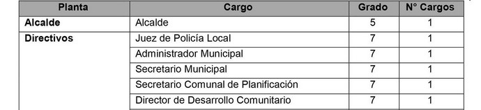 14. Que, en virtud de lo anterior, la Dirección de Obras Municipal, realiza funciones similares y tiene responsabilidades semejantes a las mínimas (Secretaria Municipal, Control, Dirección de Desarrollo Comunitario, entre otras) establecidas en la ley, por tanto, es necesario modificar el grado del Directivo, señalado precedentemente, desde el grado 8 al grado 7, a efecto de equiparar su nivel remuneratorio al de otras plazas jerárquicamente equivalentes.