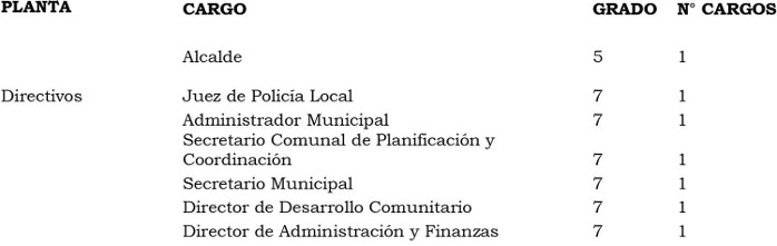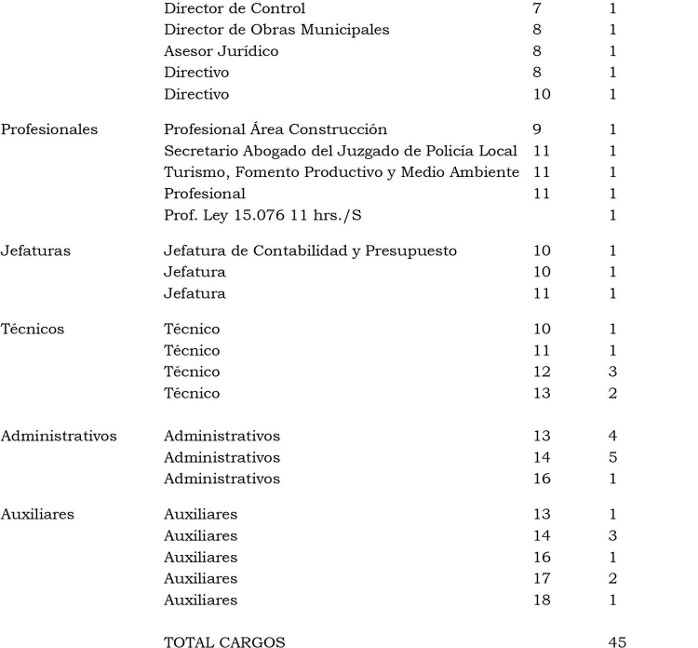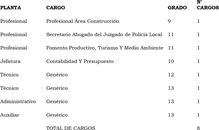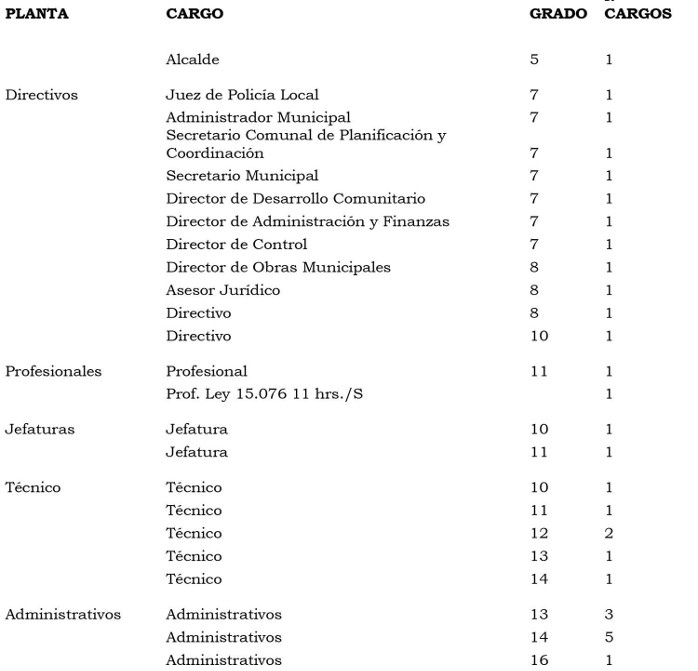. Artículo 2º: Como consecuencia de las modificaciones efectuadas a la Planta de Personal, establézcase la Planta de la Municipalidad de Llanquihue de la forma que a continuación se indica: