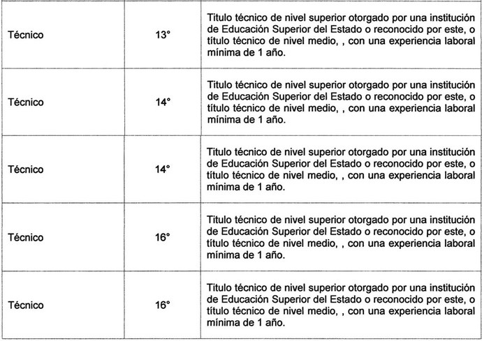 Artículo cuarto: Fíjense los siguientes requisitos específicos para el desempeño de los cargos que se mencionan: