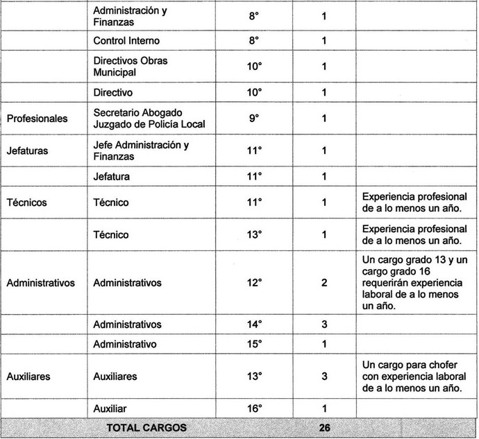 1. Que, la necesidad de fijar las plantas del personal de la municipalidad estableciendo el número de cargos para cada planta y fijar sus grados, en conformidad a que establece el artículo 49 bis de la ley N° 18.696, Orgánica Constitucional de Municipalidades.