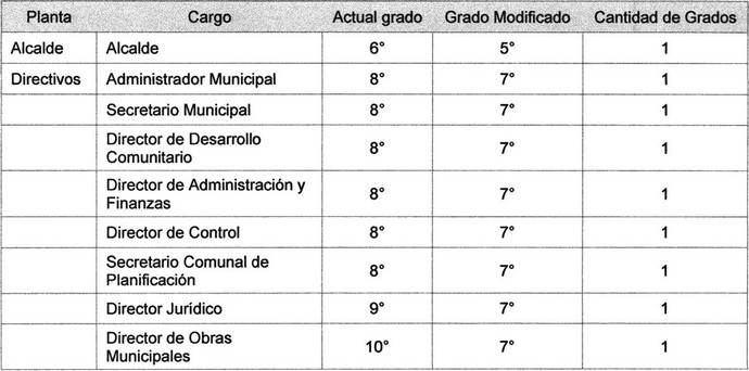 Por todo lo antes expuesto es que se modifica los grados del alcalde y las siguientes Direcciones y Secretarías: