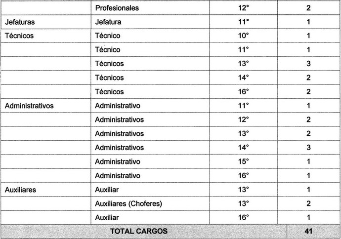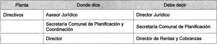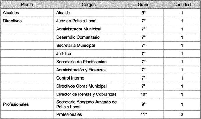 Artículo tercero: Conforme a la modificación referida en el artículo anterior, establécese la planta de personal de la Municipalidad de Freirina: