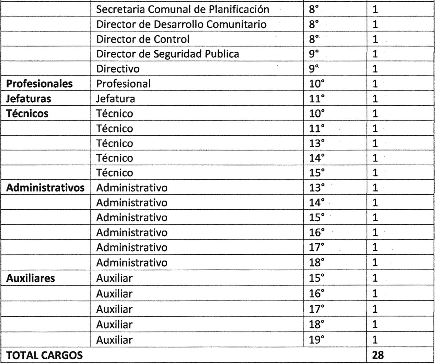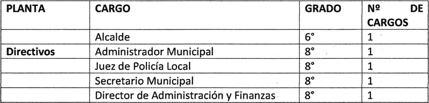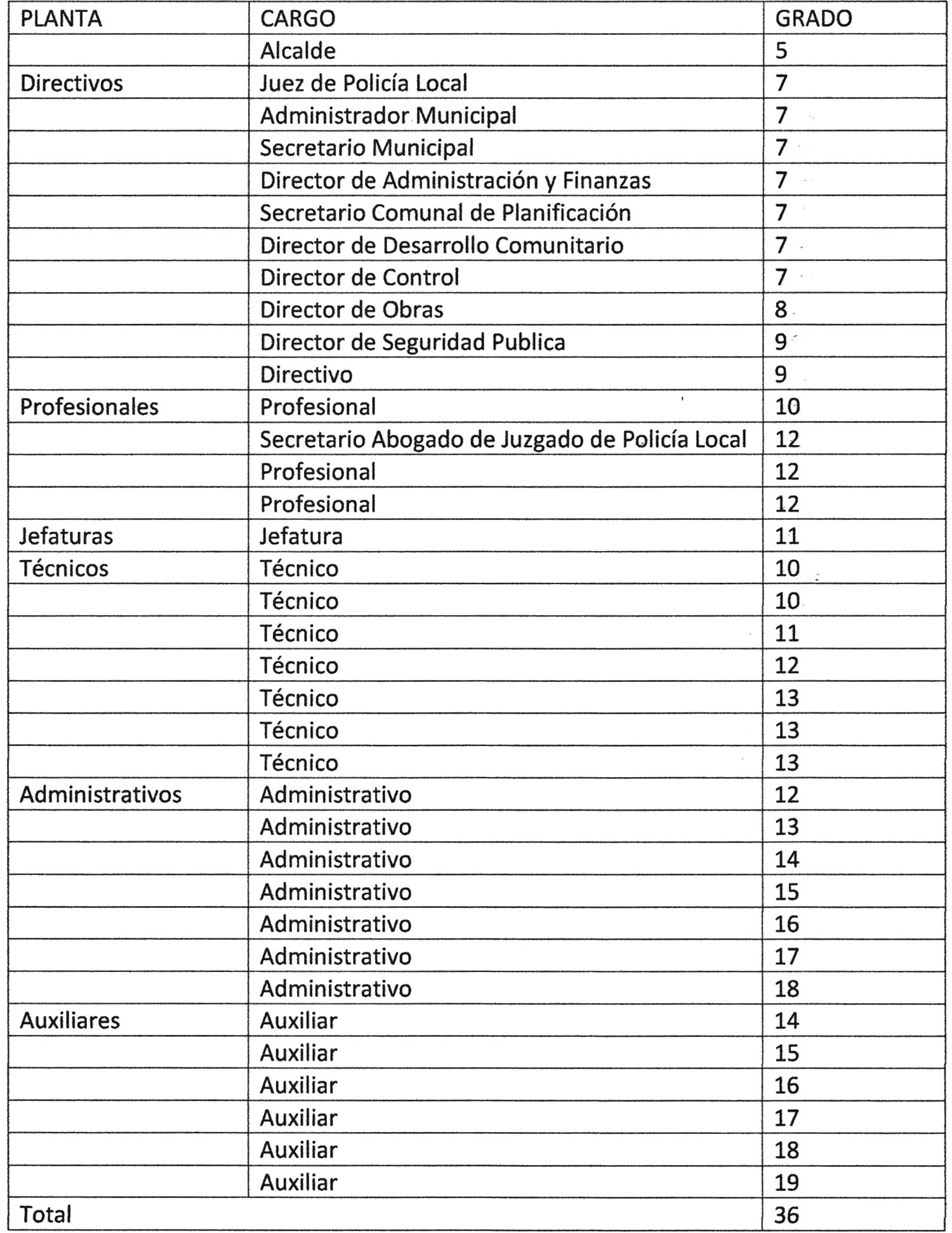 9.- En concordancia con el artículo 7 de la ley Nº 18.883 que "Aprueba Estatuto Administrativo Para Funcionarios Municipales", la planta de la municipalidad de Antuco contendrá las siguientes posiciones relativas.