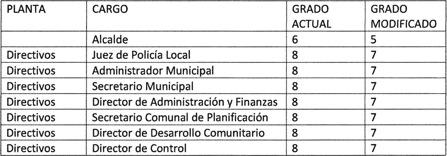 Asimismo, cabe precisar que el estamento de administrativos de la planta de personal del municipio de que se trata, abarcará las posiciones relativas desde el grado 12 al 18, y no, como se señala en el número 9.- de los considerandos del referido documento.