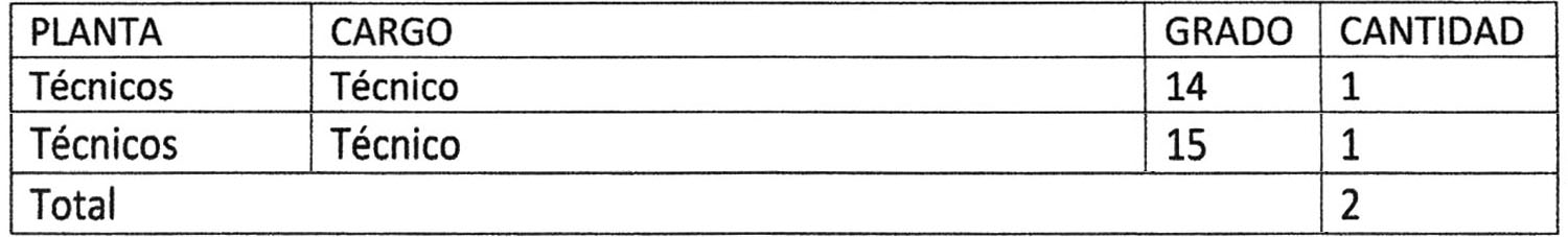 6.- La necesidad de cubrir las funciones ordinarias determinadas por la legislación actual con los profesionales y técnicos adecuados y con responsabilidad administrativa, se crean dos cargos en la planta profesional y cuatro cargos en la planta técnica de acuerdo al diseño de funciones y disponibilidad presupuestaria. (2 cargos grado 12 en la planta profesional y 1 cargo grado 10, 1 cargo grado 12 y 2 cargos grado 13 en la planta Técnica).
