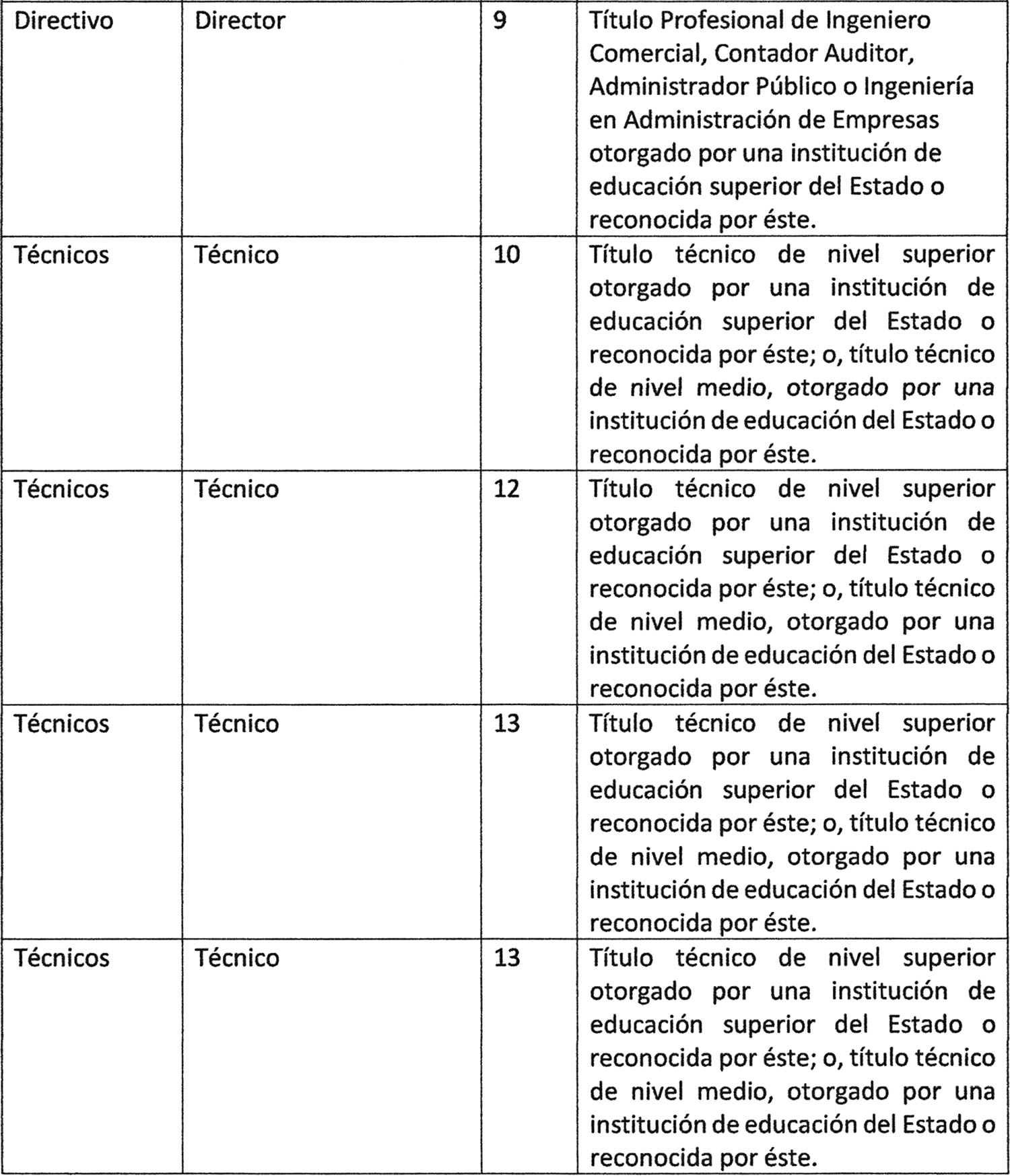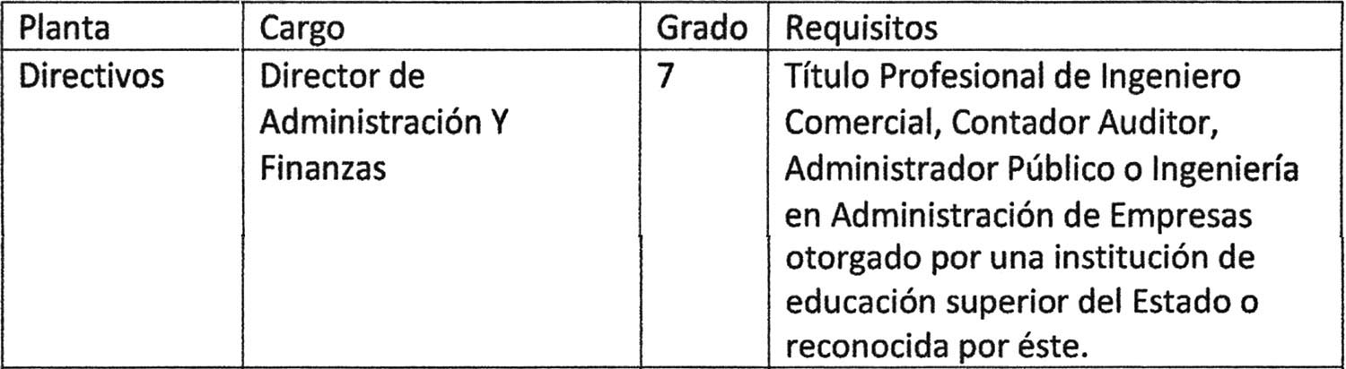 Artículo 3º.- Además de los requisitos exigidos por la ley, fíjense los siguientes requisitos específicos a los cargos que se señalan: