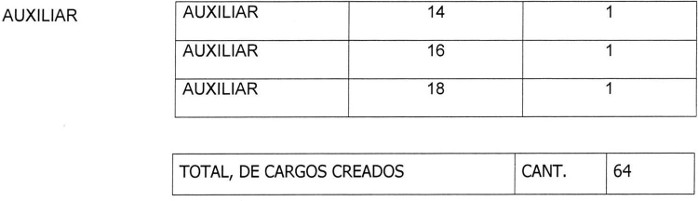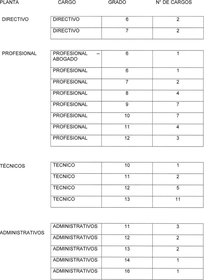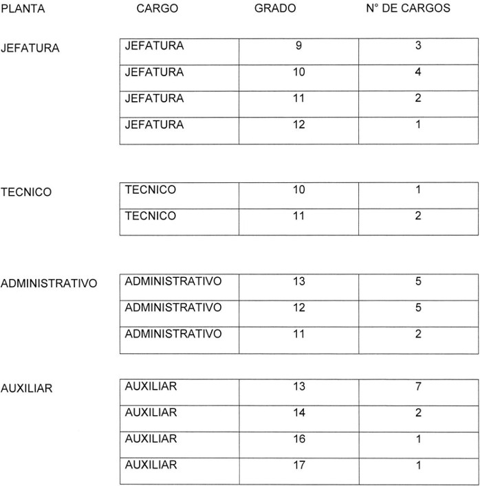 Finalmente, resulta útil precisar que en la fijación de la planta del reseñado artículo 2°, en el caso del técnico grado 10, administrativo grados 12 y 13 y auxiliar grados 13 y 14, no se reflejan los cargos suprimidos, lo cual se explica en virtud del párrafo final del N° 2 del artículo 1°.