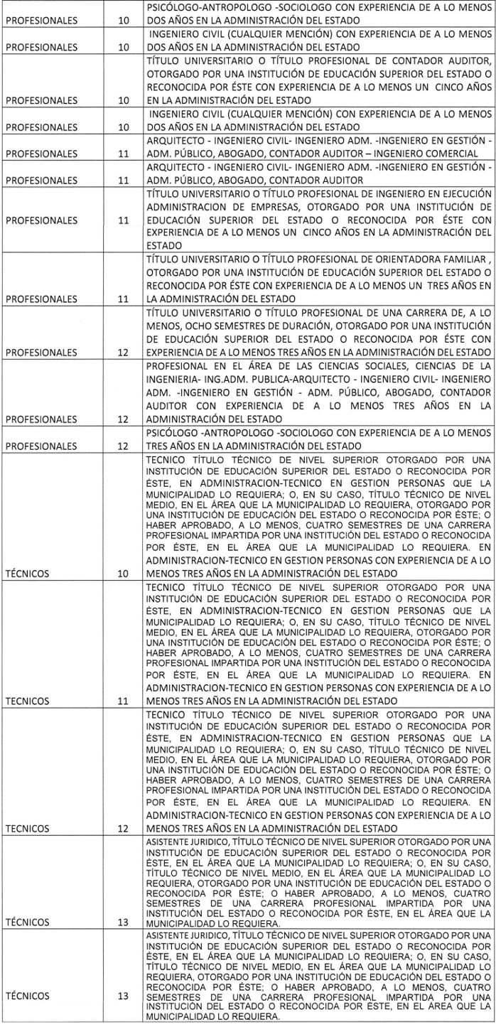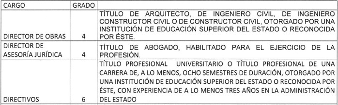10. Que, la Ilustre Municipalidad de Iquique ha modificado de 6 a 4 el grado del Director de Obras Municipales y del Director de Asesoría Jurídica.