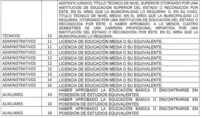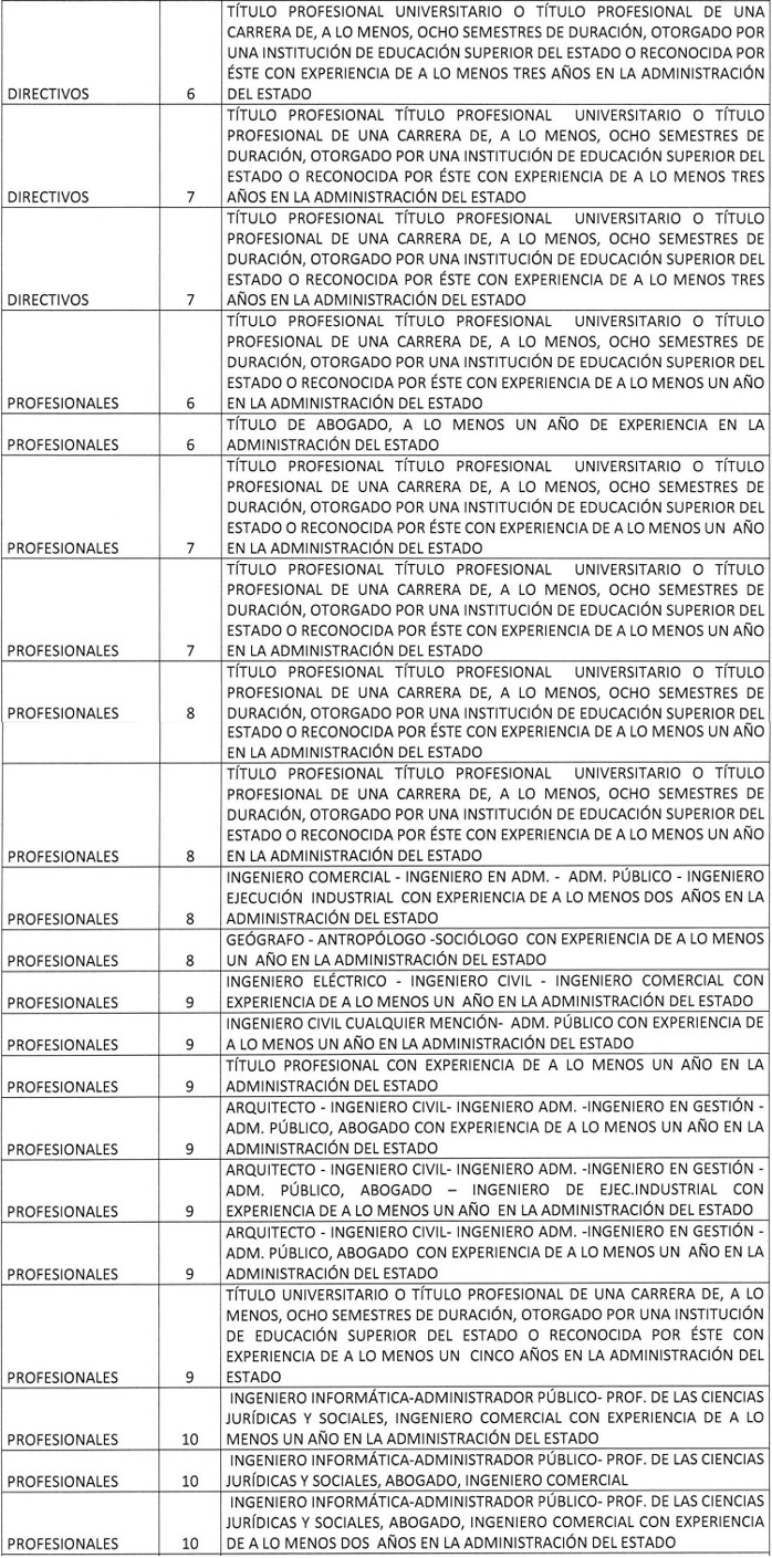 2.- Fíjanse los siguientes requisitos específicos para el desempeño de los cargos que se mencionan: