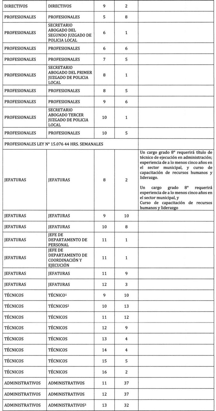 A su vez, cabe señalar respecto al artículo 6° del reglamento, donde se dispone la planta de personal de la Municipalidad de Maipú que quedará vigente luego de las modificaciones introducidas en los artículos anteriores, que de acuerdo a la letra C. del artículo 4° del mencionado reglamento, en el grado 9 y 10 técnicos, además de los requisitos indicados, también se requerirá para 14 cargos del grado 9 técnicos poseer un título técnico de una institución reconocida por el Estado, y para 14 cargos del grado 10 técnicos poseer un título técnico de una institución reconocida por el Estado.