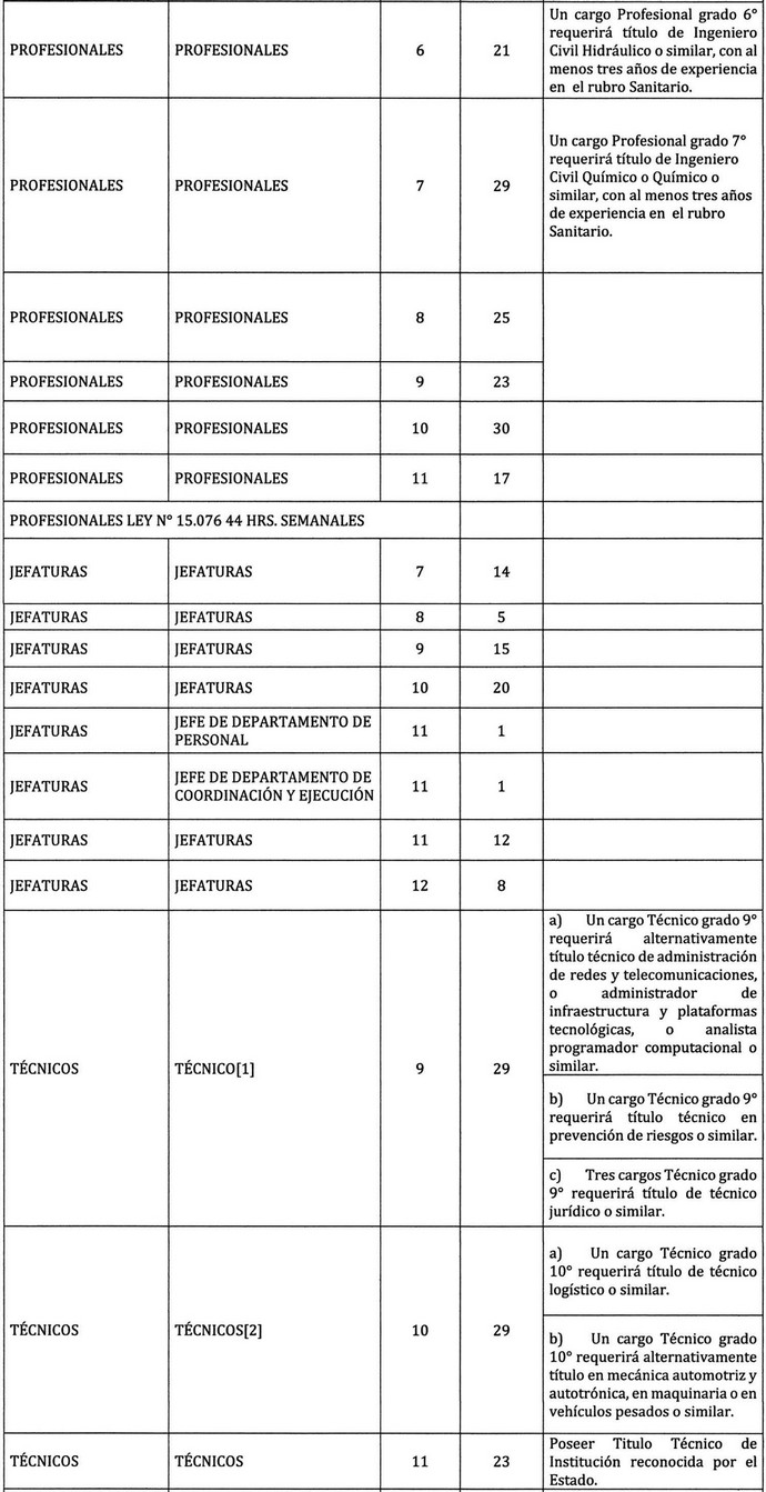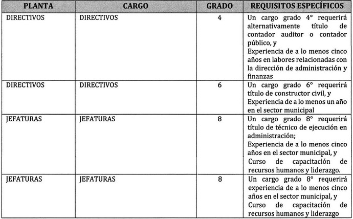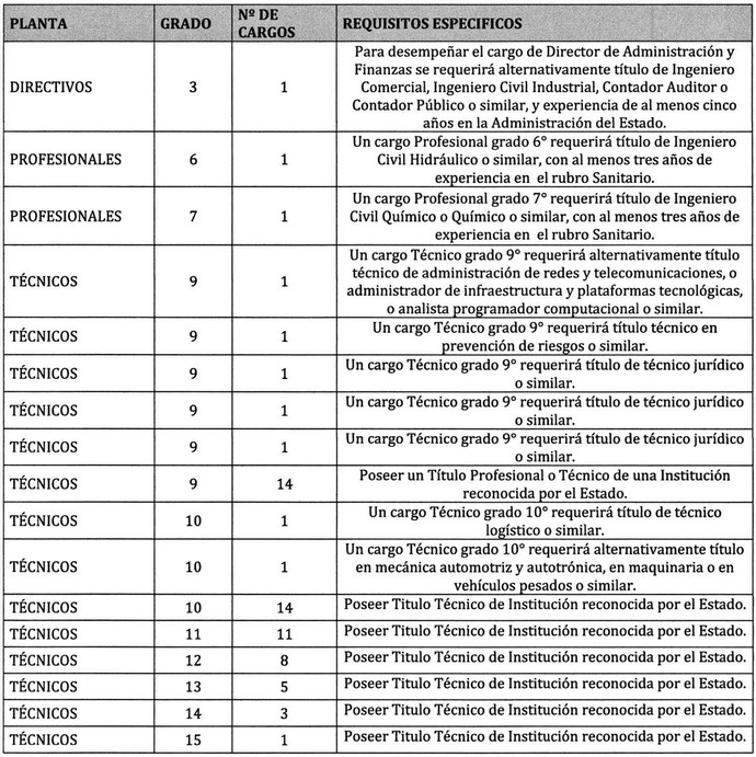 No obstante lo anterior, es menester indicar, respecto a los requisitos específicos creados en la letra C. del artículo 4° del reglamento, que en las exigencias para 14 cargos del grado 9 técnicos, no se considerará la de poseer título profesional, puesto que se trata del escalafón de técnicos.