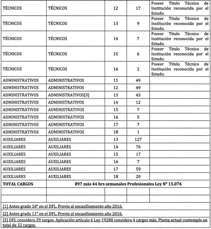 (3) DFL considera 29 cargos. Aplicación artículo 6 Ley 19.280 considera 4 cargos más. Planta actual contempla un total de 32 cargos.