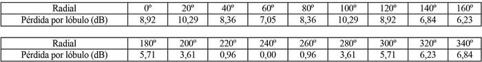 - Diagrama de radiación horizontal, de acuedo a la siguiente tabla: