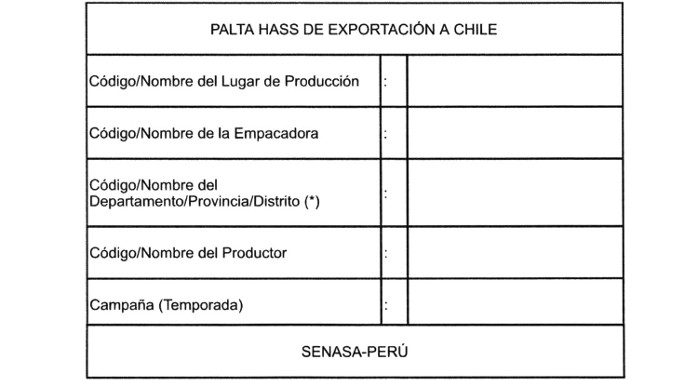 Establézcanse los siguientes requisitos fitosanitarios de importación, a frutos frescos de palta (Persea americana) variedades Hass, para consumo, procedentes de las siguientes unidades territoriales, según las especificaciones establecidas en el Plan de Trabajo conjunto SAG-Senasa: