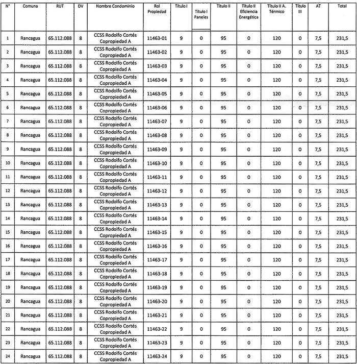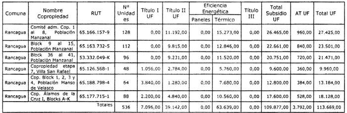 g) Actas Comisión Técnica Evaluadora del Programa de Condominios de Vivienda Social de Serviu Región del Lib. Gral. Bernardo O'Higgins, de fecha 13 de diciembre de 2019, que indica el desglose de los montos de las partidas descritas en la presente resolución.