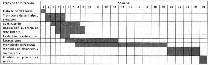 Artículo 11.- Las obras del proyecto se iniciarán dentro del plazo de 12 meses, contados desde la fecha de reducción a escritura pública del presente decreto, teniendo una duración de 24 semanas y su ejecución será conforme a las etapas y al tiempo que se detalla a continuación: