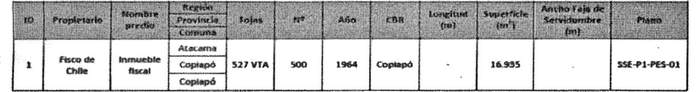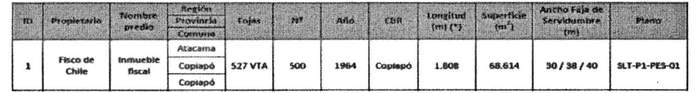 Artículo 7º.- Constitúyanse, de acuerdo con lo que sobre el particular establece la Ley General de Servicios Eléctricos, las servidumbres para las instalaciones del proyecto denominado "Seccionamiento de la línea 2x220 kV Cardones - Carrera Pinto - Diego de Almagro y Cambio de Configuración en Subestación San Andrés 220 kV", en el predio fiscal que se indica a continuación: