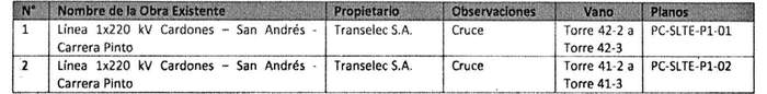 Reubicación Seccionamiento Línea 1x220 kV Cardones - San Andrés - Carrera Pinto y Seccionamiento Línea 2x220 kV Cardones - Carrera Pinto - Diego de Almagro