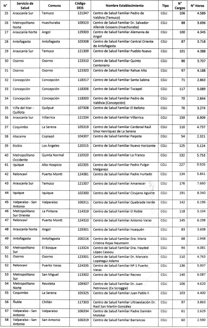 D.O. 07.02.2023.- horas semanales, que completan el 24,97% del total de las horas dotación en establecimientos urbanos de Atención Primaria de Salud Municipal. Sumado a los tramos anteriores representan el 99,88% de la dotación considerada para el beneficio.
