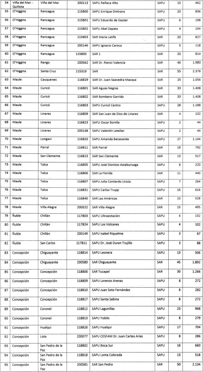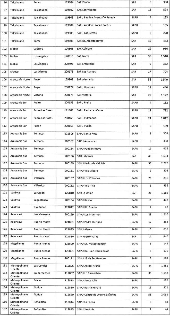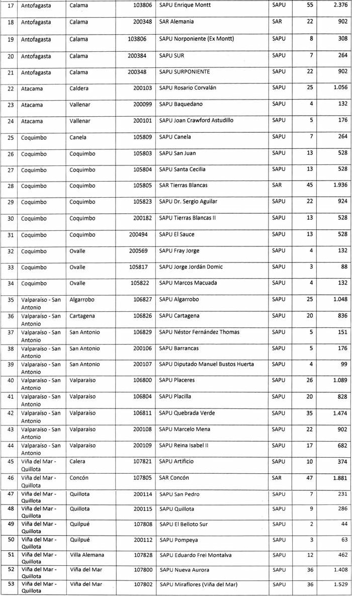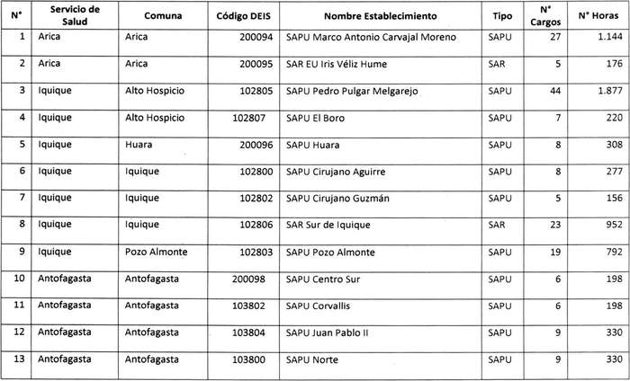 D.O. 07.02.2023 una asignación de desempeño difícil de 15% al personal que labora en los Servicios de Atención Primaria de Urgencia Urbanos, que se señalan en las siguientes comunas, correspondiente a 139.736.- horas semanales, que representan el 4,43% del total de horas de la dotación de Atención Primaria de Salud Municipal del país (3.156.556.- horas semanales).