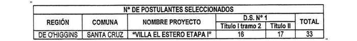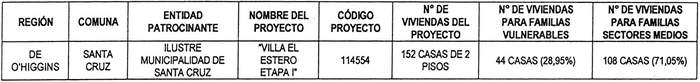PROYECTO INTEGRADO DE SUBSIDIO (PIS): "VILLA EL ESTERO ETAPA I", COMUNA DE SANTA CRUZ, REGIÓN DE O'HIGGINS, CÓDIGO PROYECTO RUKAN: 114554.