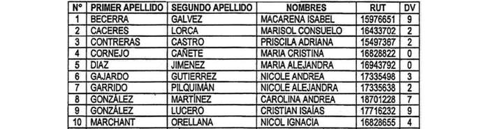 . POSTULANTES SELECCIONADOS DS Nº 1 (V. Y U.), DE 2011, TÍTULO II.