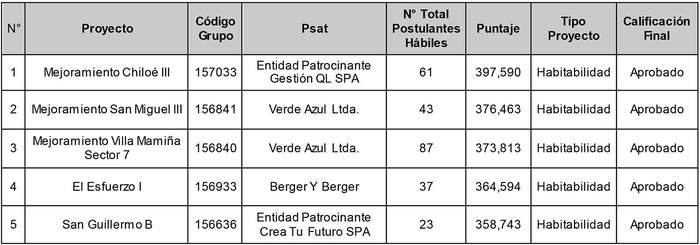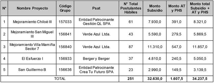 3. Fíjase el número de postulantes seleccionados por proyecto indicado del sector de Bajos de Mena de la comuna de Puente Alto, de acuerdo a lo señalado en la tabla que se indica a continuación, en base a las condiciones especiales establecidas en el presente llamado.