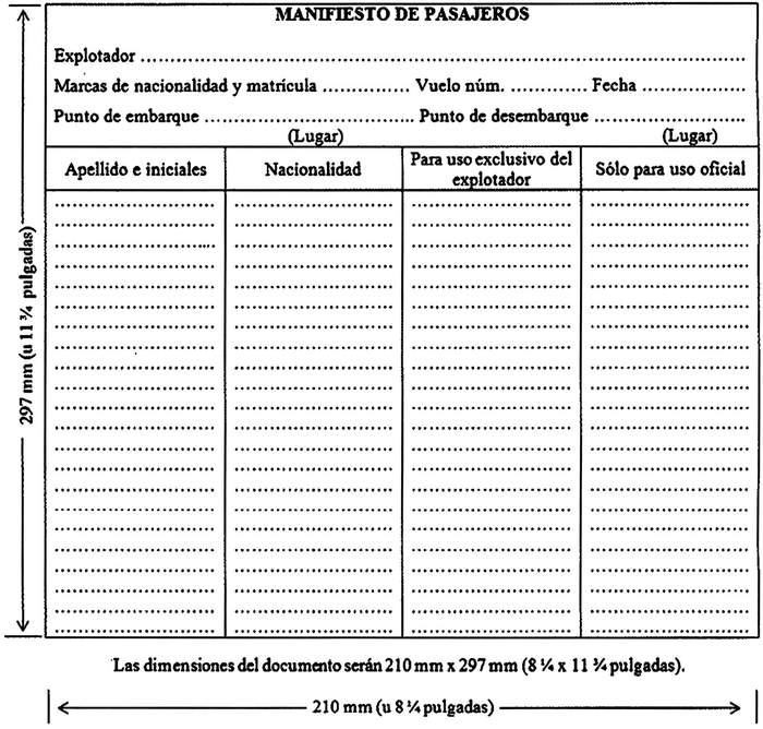 9.1.4 Una vez implementado un sistema API, no podrá exigirse adicionalmente a los explotadores de aeronaves un manifiesto de pasajeros impreso.