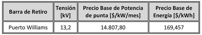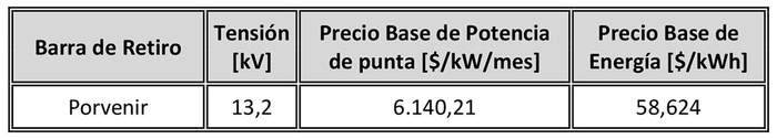 A continuación, se detallan los precios de nudo de energía y potencia de punta que se aplicarán a los suministros servidos en la barra de retiro para el nivel de tensión que se indica.