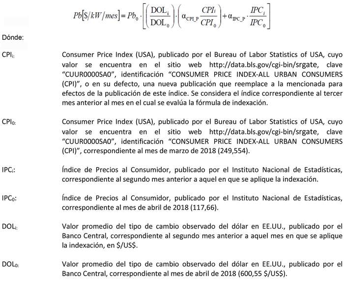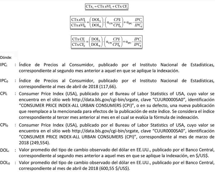 La fórmula de indexación de los costos de transmisión, así como la fuente y convención de cálculo de los índices se presenta a continuación: