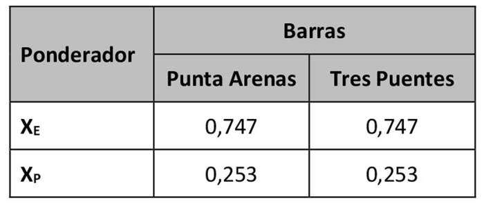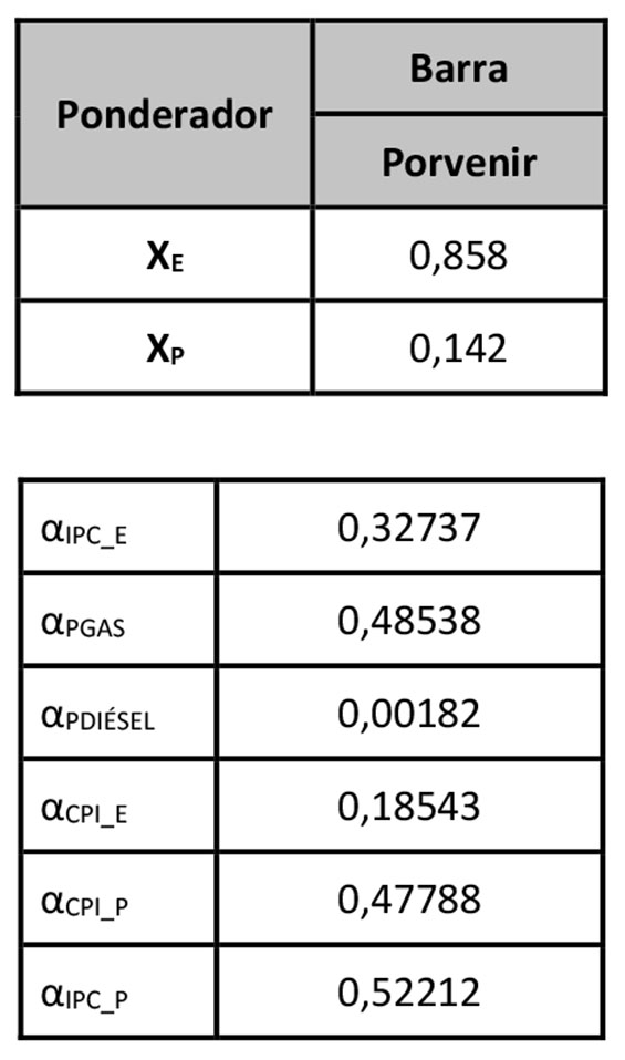 Los ponderadores de cada uno de los índices que componen la fórmula indexación del precio de nudo de la potencia, son los que a continuación se indican:
