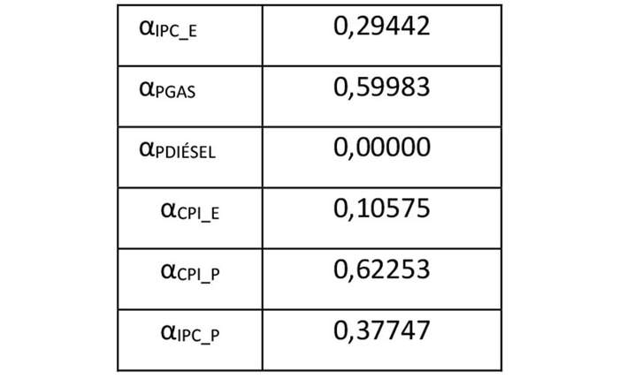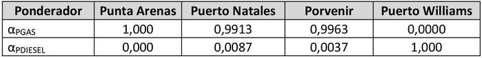 Los ponderadores de cada uno de los índices que componen la fórmula indexación del costo variable combustible medio, son los que a continuación se indican.