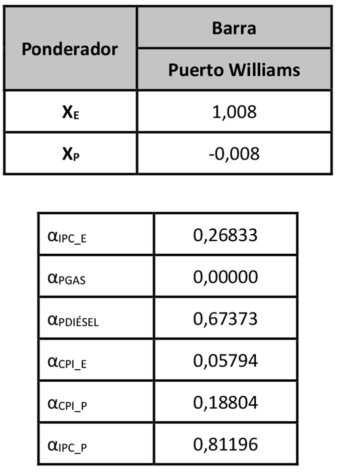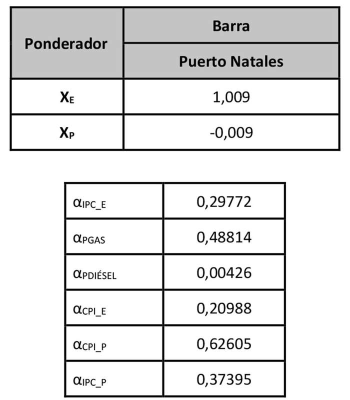 Los ponderadores de cada uno de los índices que componen la fórmula indexación del costo variable no combustible medio, son los que a continuación se indican.