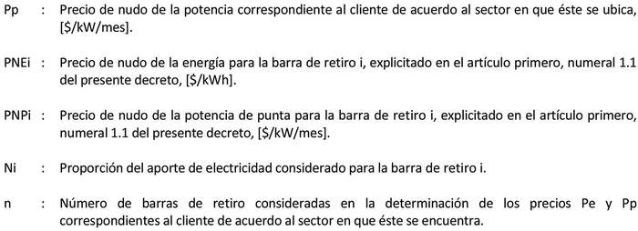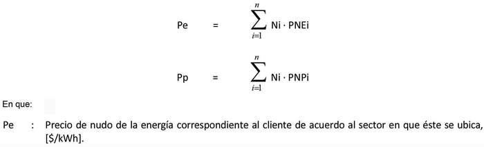 Para cada concesionario y sector de nudo los precios de nudo de energía y potencia se calcularán de la siguiente forma: