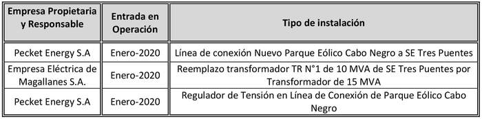 Para el Sistema de Punta Arenas, las siguientes empresas serán responsables de la ejecución y construcción de las obras de transmisión que a continuación se indican:
