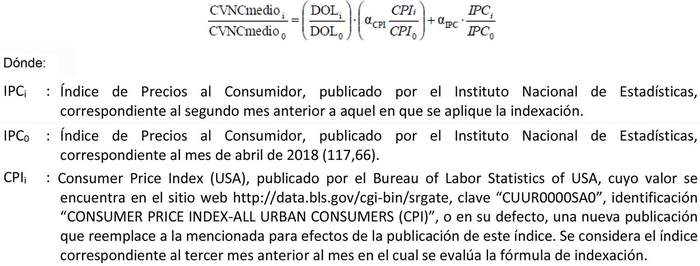 Asimismo, la fórmula de indexación del costo variable no combustible medio, así como la fuente y convención de cálculo de los índices se presenta a continuación: