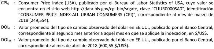 Para el período comprendido entre el 1 de noviembre de 2018 y el 30 de abril de 2019, el valor del arg será igual a 1.