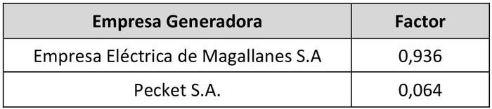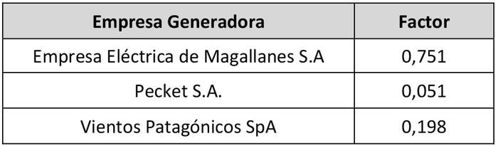 El factor de costos de inversión y administración de cada empresa generadora, que corresponde a la proporción que le resulta asignable a cada empresa de generación respecto del total de costos actualizados de inversiones en instalaciones de generación e infraestructura asociada al segmento de generación y de los costos de administración considerados en la determinación de la tarifa y que no se encuentren contemplados dentro de los costos variables medios, corresponden a los que se detallan a continuación: