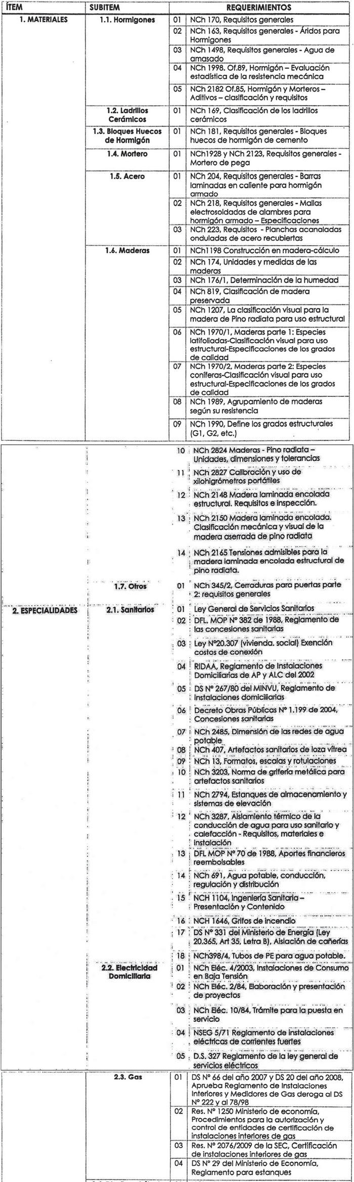 . El estándar de las distintas partidas será siempre igual o superior a los requisitos establecidos en el presente Itemizado Técnico y, en general, a la normativa vigente.