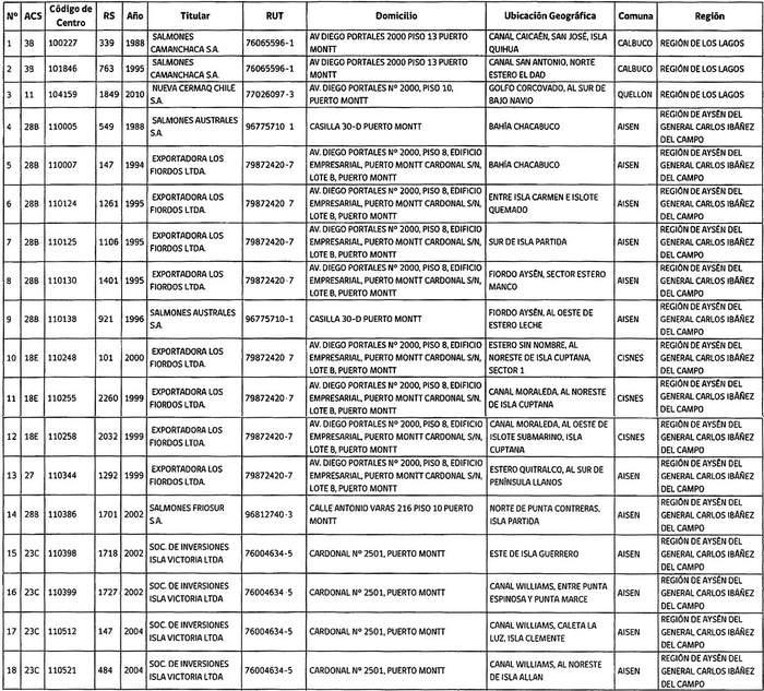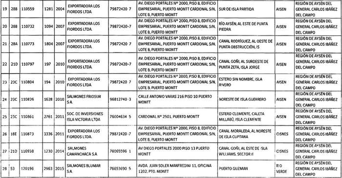 2. La prórroga de iniciación o reanudación de actividades otorgada en numeral anterior, comprenderá a las concesiones de acuicultura que se señalan a continuación: